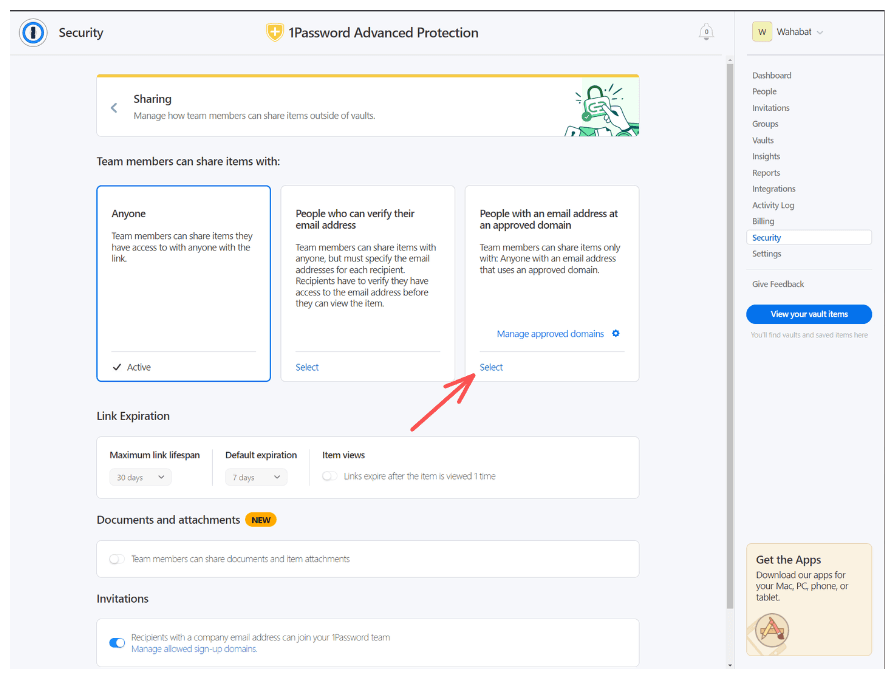 For additional security, we recommend you to setup specific approved domains, so you know who can access the links that your team shares.